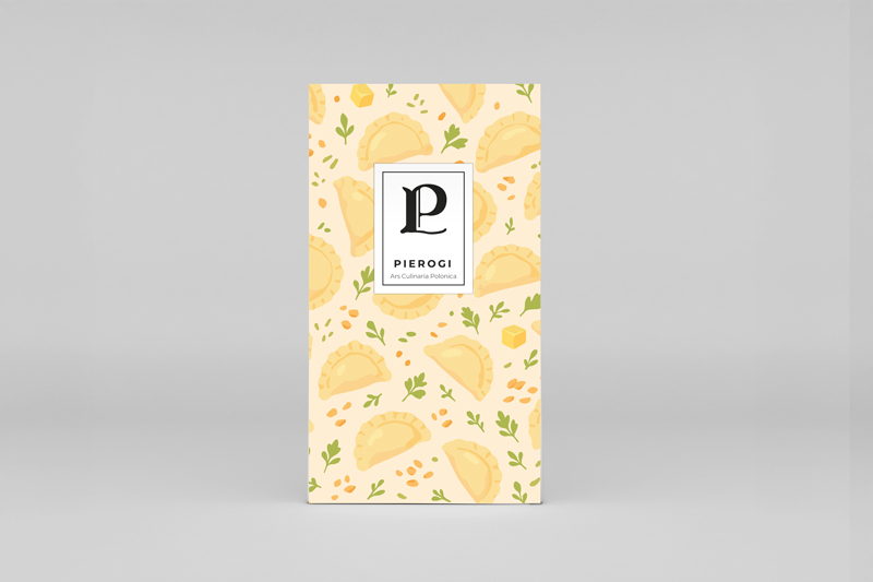 Starting a new series Ars Culinaria Polonica: a set of kitchen notebooks featuring famous dishes from traditional Polish cuisine, with the first volume dedicated to Pierogi. The cover illustration presents classic pierogi dumplings with a potato filling, butter, and toppings. Inside each notebook, there is a short description highlighting this well-known Polish dish. On the front, we use Lombard Initials designed by Aleksander Augezdecky in 1557 in Szamotuły, Poland. The letter P stands for Pierogi.